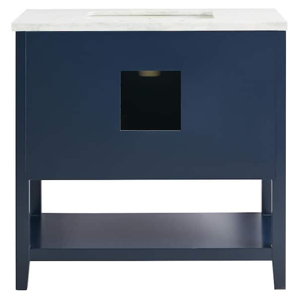 Waldorf 36 in. W x 21 in. D x 34 in. H Free Standing Bath Vanity in Navy with Carrara Marble Counter Top