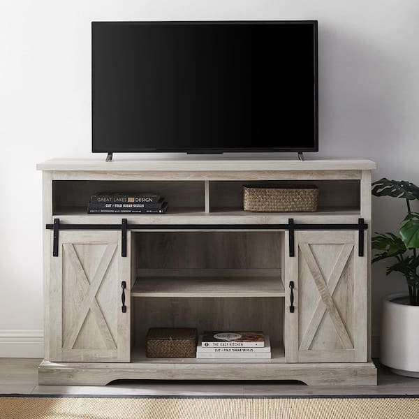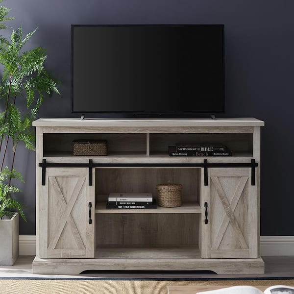 52 in. White Oak Composite TV Stand 56 in. with Doors