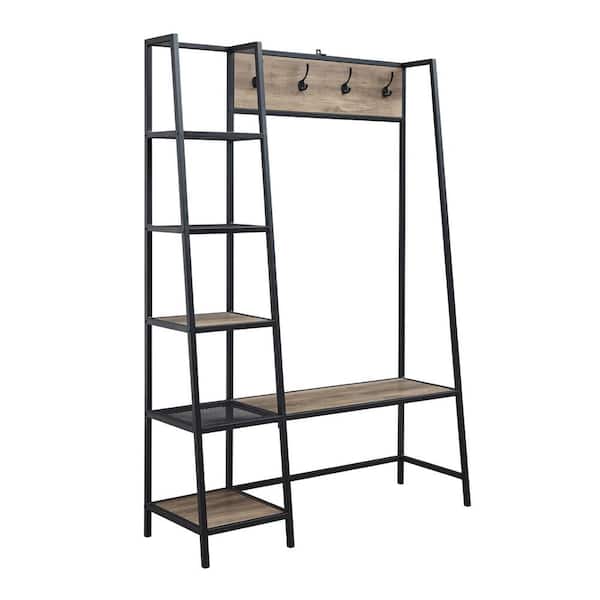 • Versatile hall tree that contains 5 side shelves and 4 top hooks