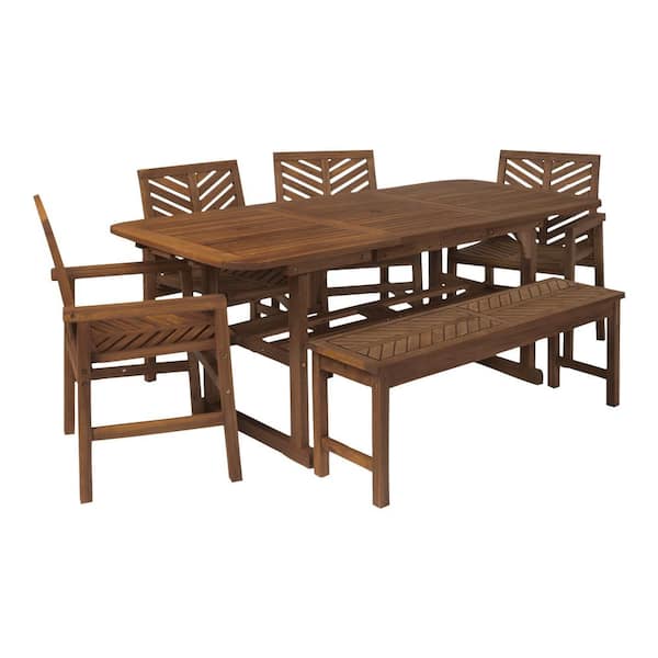 Dark Brown 6-Piece Extendable Wood Outdoor Patio Dining Set