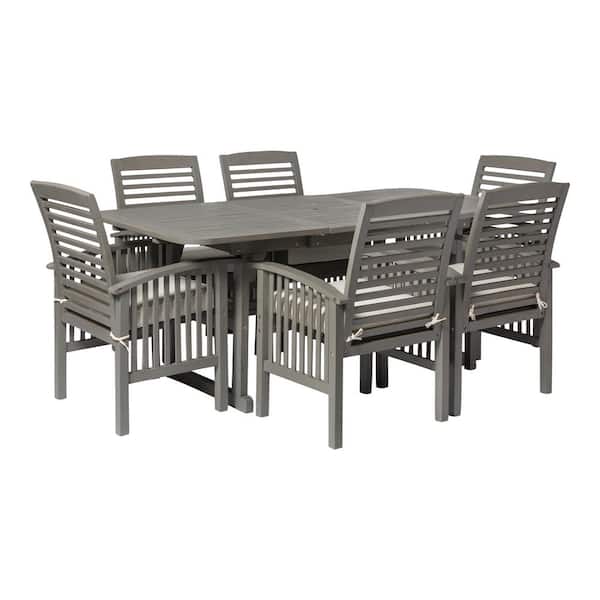 Grey Wash 7-Piece Classic Wood Patio Outdoor Dining Set with White Cushions
