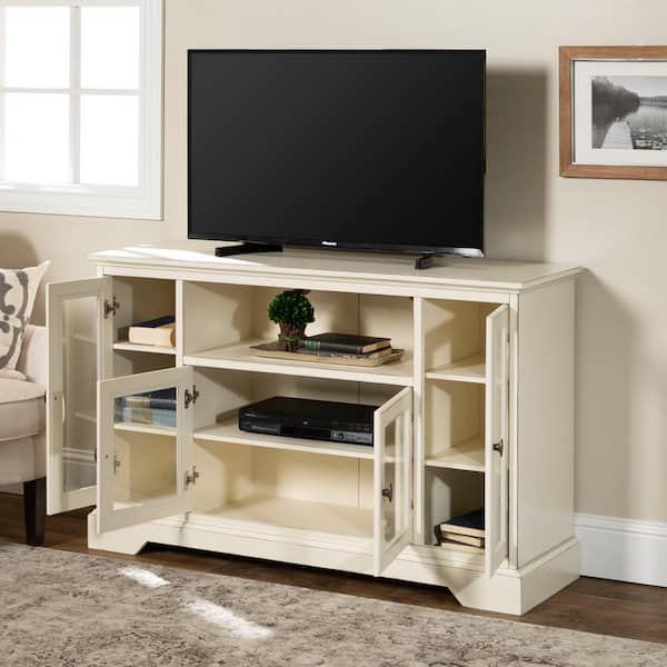 Highboy 52 in. Antique White Wood TV Stand 55 in. with Glass Doors