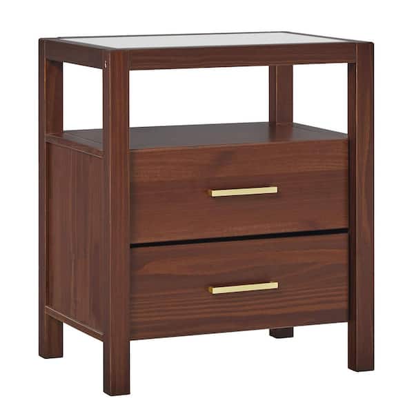 Isla Walnut Solid Wood Modern 2 Drawer 22 in. W Nightstand