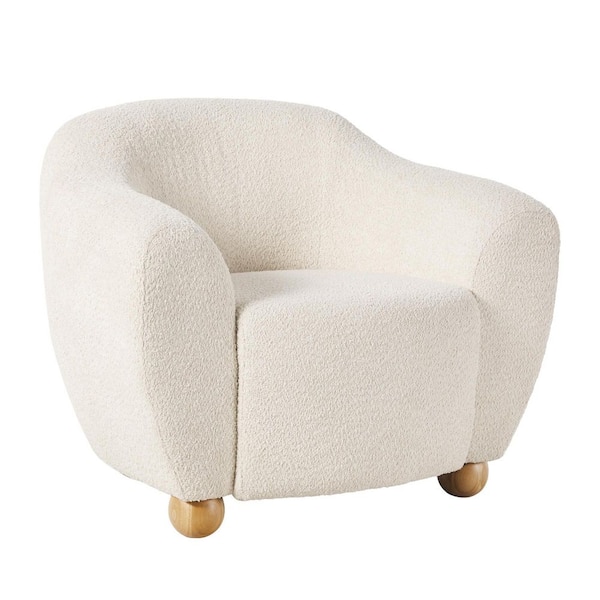 Linley Ivory Contemporary Boucle Accent Chair with Wood Legs