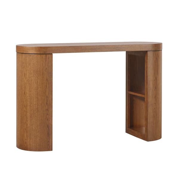 Maya 48 in. Medium Brown Oak Modern Oval Solid Oak Wood Veneer & MDF Console Table with Column Legs and Storage