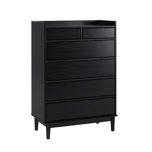 Mid-Century Modern Black 6 Drawer 30 in. W Solid Wood Dresser with Tray Top