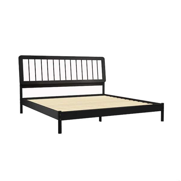 Mid-Century Modern Black Solid Wood Frame King Platform Bed