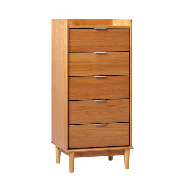 Mid-Century Modern Caramel 5-Drawer 20 in. Chest of Drawers with Tray Top