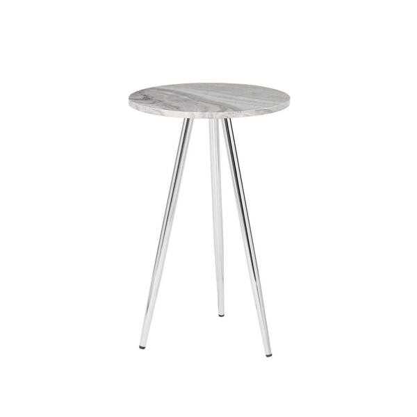 Minimalist 15.75 in. Faux Grey Marble and Chrome Round Wood End Table with Tripod Legs