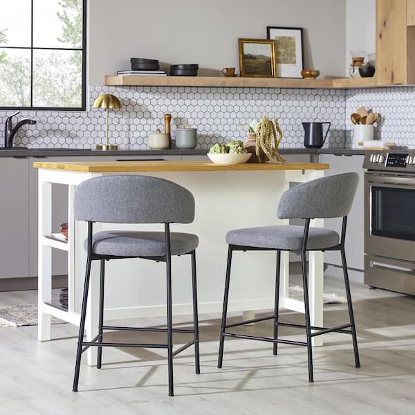 Modern 24 in Charcoal Low Back Metal Counter Stool Chenille Seat, Set of 2