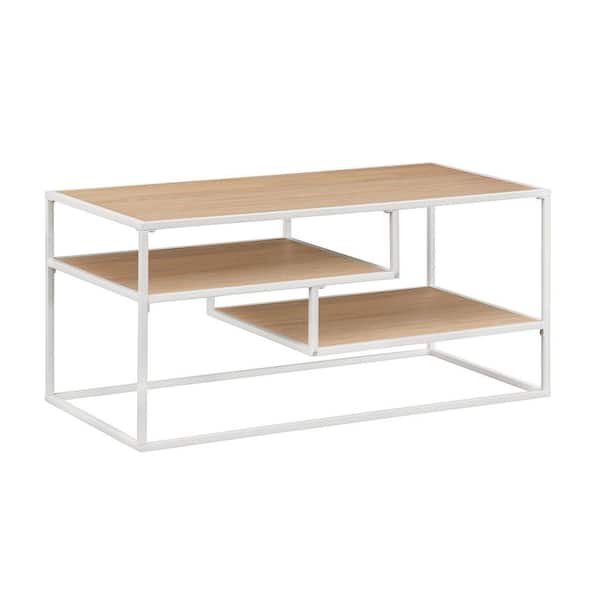 Modern 40 in. Coastal Oak and White Rectangle Wood Coffee Table with 1-Shelves