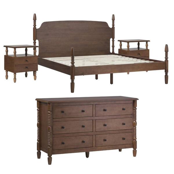 • Set of 2 nightstands, 1 6-drawer dresser, and 1 king bed