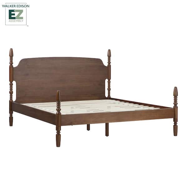 Modern Farmhouse Easy Assembly Brown Solid Wood Frame King Platform Bed with Spindle Detailing