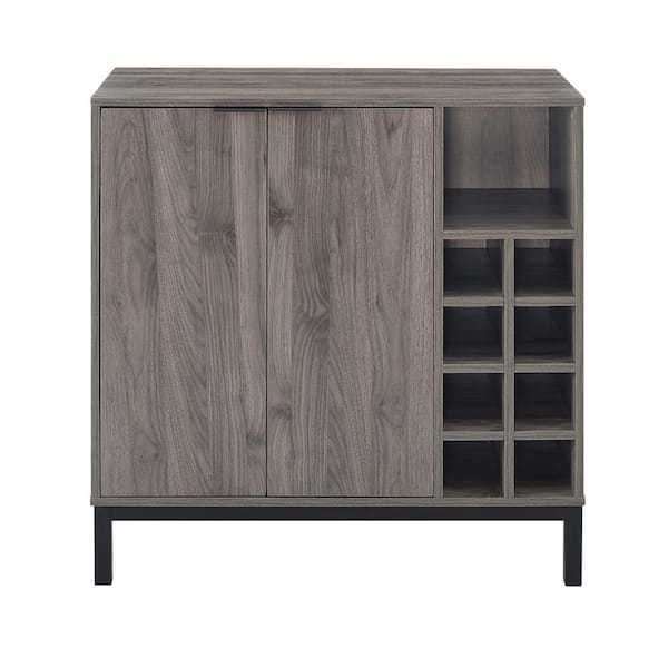 Slate Gray Modern Bar Cabinet with Wine Storage