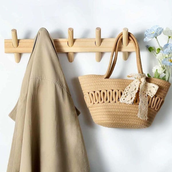 Wall Hook Rack, Wooden Natural Coat Rack Wall Mount, 5-Hooks