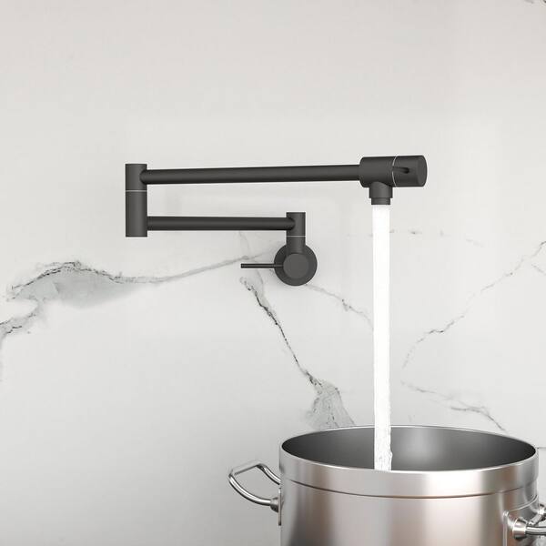 Wall Mount Pot Filler Faucet Kitchen Sink Folding Stretchable Two Handle Single Hole Matte Black Stainless Steel