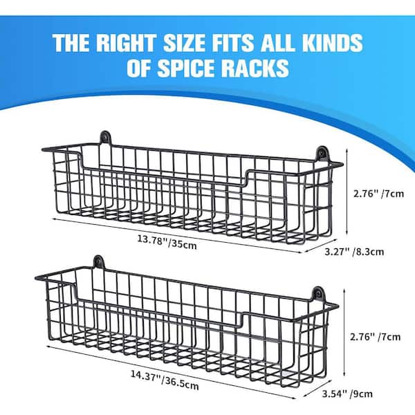 Wall Mount Spice Rack Organizer 2 Shelves Black Space-Saving Storage Shelf for Kitchen Cabinet Door