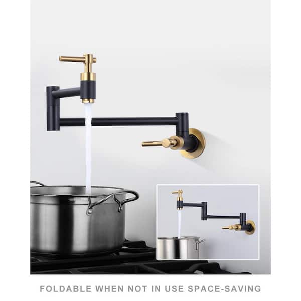 Wall Mounted Pot Filler Faucet in Gold and Black