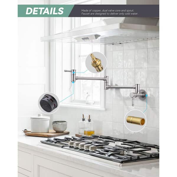 Wall Mounted Pot Filler with Removable Aerator in Brushed Nickel