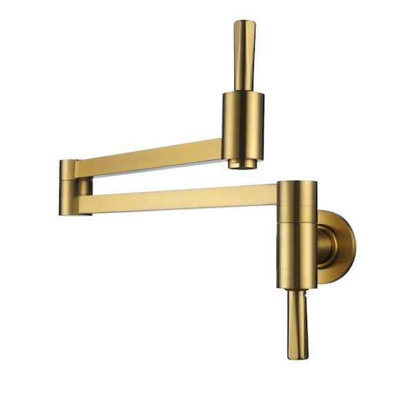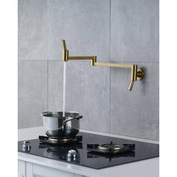 Wall Mounted Pot Filler with Stretchable Double Joint Swing Arm in Gold