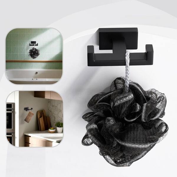 Wall Mounted Square J-Hook Robe/Towel Hook in Matte Black