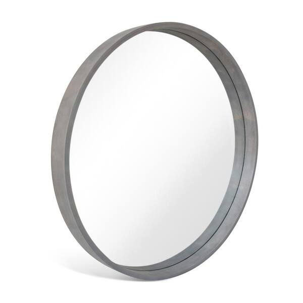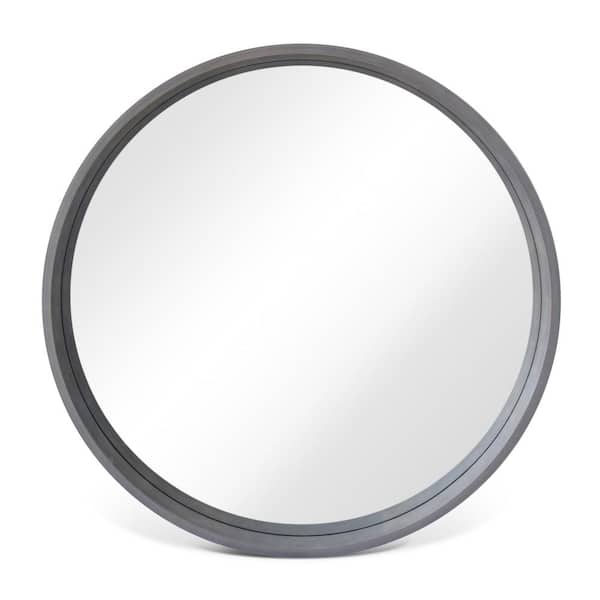 28 in. Round Wall Mirror with Gray Frame