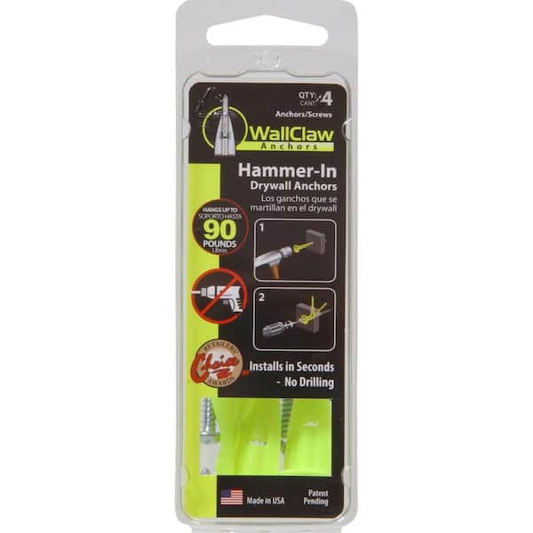 #8 x 1-1/4 in. Push-In 90 lbs. Drywall Plug Anchor with Screws (4-Pack)