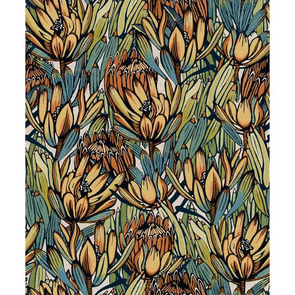 Beige/Blue Exotic Protea Flower Print Non-Woven Non-Pasted Textured Wallpaper 57 sq. ft.