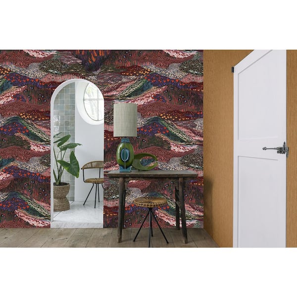 Burgundy Panoramic Valleys Print Non Woven Non-Pasted Textured Wallpaper 68 sq. ft.