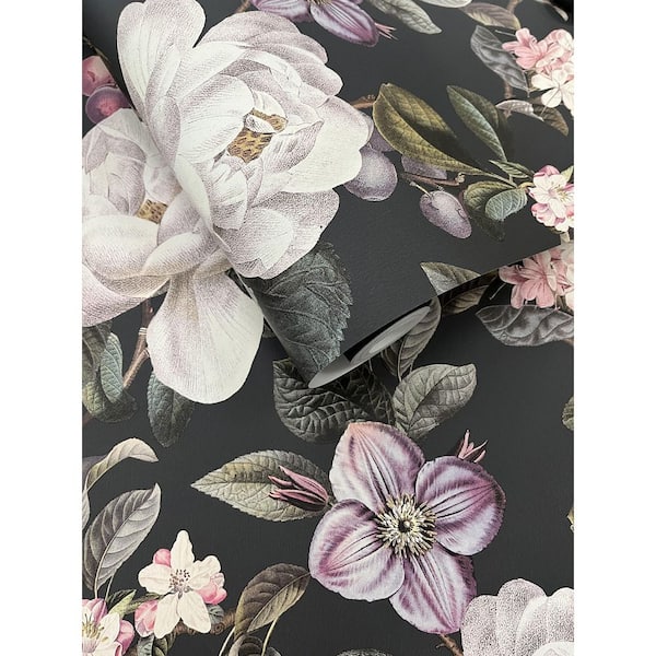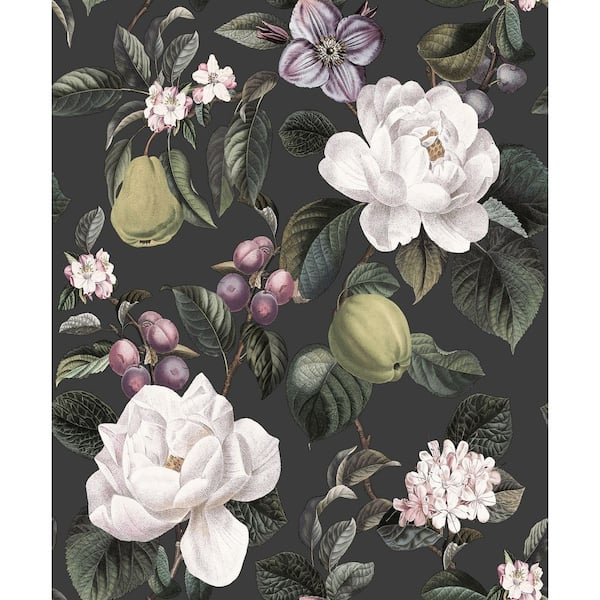 Charcoal Pear and Blossom Elegance Wallpaper Print Non-Woven Non-Pasted Textured Wallpaper 57 sq. ft.