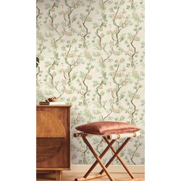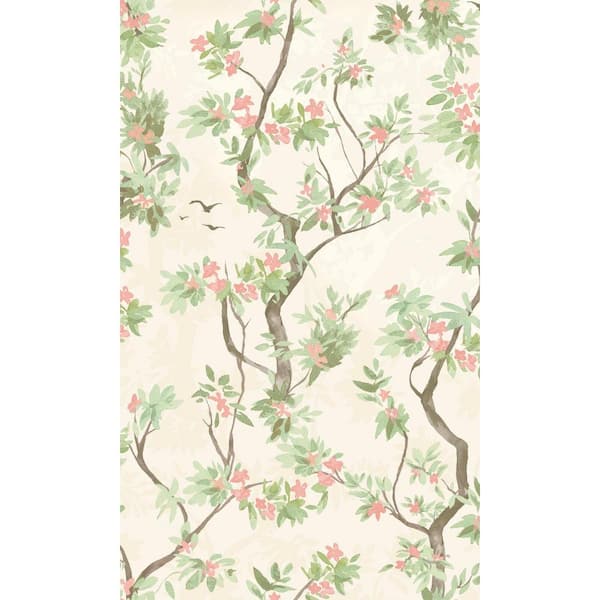 Cream and Pink Wild Blossoming Tree Tropical Wallpaper with Non-Woven Material Non-Pasted Covered 57 sq. ft. Double Roll