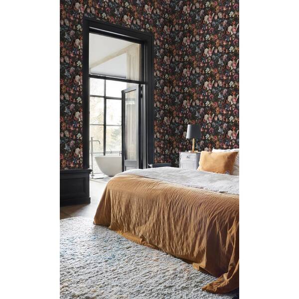 Dark Gray Paradise Flowers Print Non Woven Non-Pasted Textured Wallpaper 57 sq. ft.