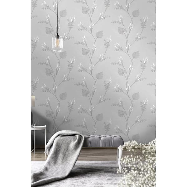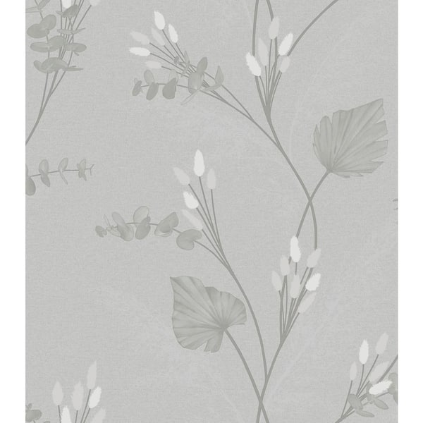 Grey Bunny Tails and Pampas Grass Print Non Woven Non-Pasted Textured Wallpaper 57 Sq. Ft.