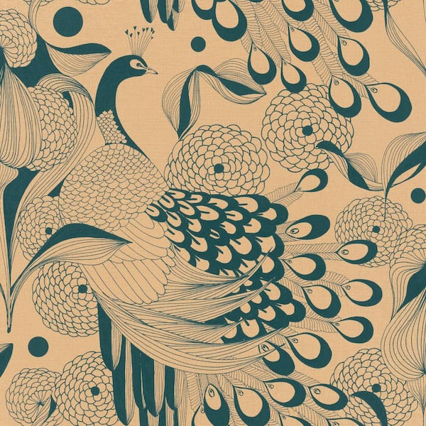 Illustrated Peacocks Wallpaper Gold & Teal Paper Strippable Roll (Covers 57 sq. ft.)