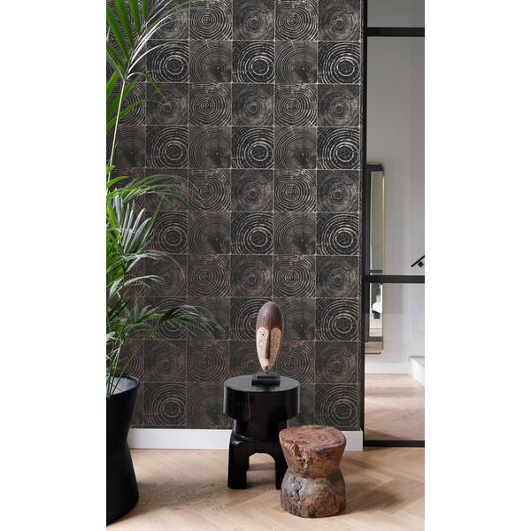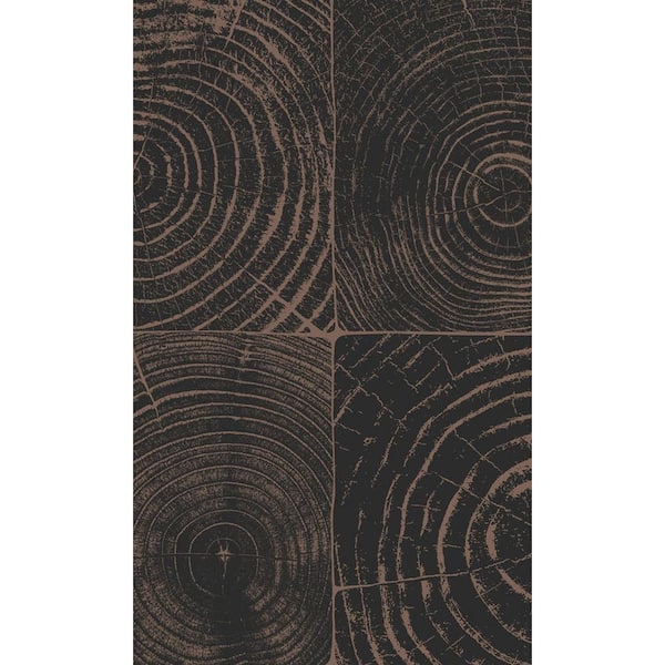 Matt Black and Shiny Bronze Cross-Sections Tree Trunks Print Non Woven Non-Pasted Textured Wallpaper 57 sq. ft.