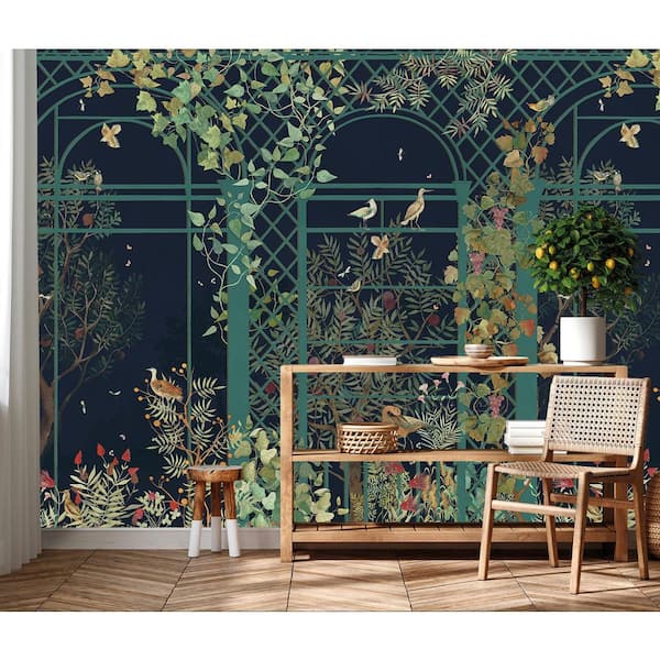 Midnight Blue Botanical Greenhouse Print Non Woven Non-Pasted Textured Wallpaper 102 sq. ft.