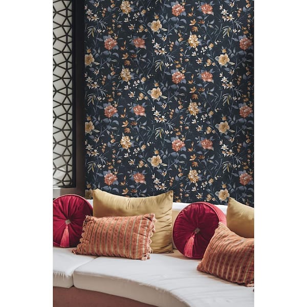 Navy Trailing Camelia Flowers Print Non Woven Non-Pasted Textured Wallpaper 57 sq. ft.