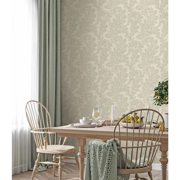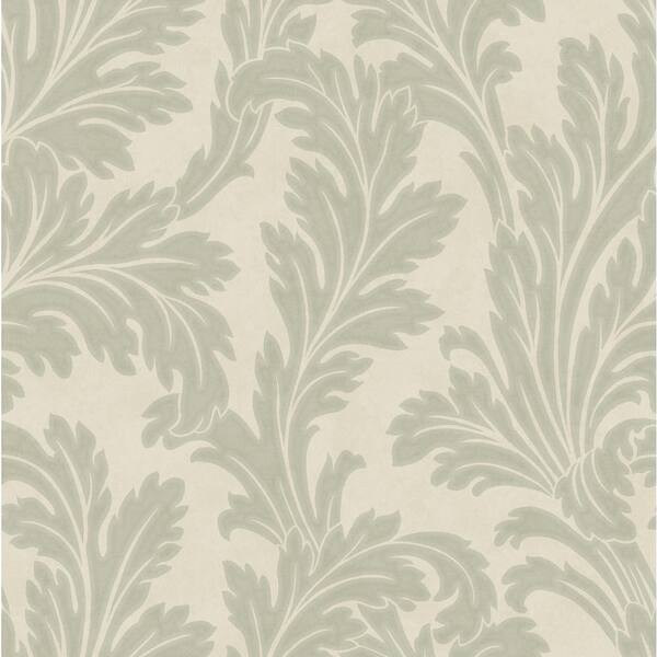 Sage & Cream Embossed Acanthus Leaf Print Non Woven Non-Pasted Textured Wallpaper 57 Sq. Ft.