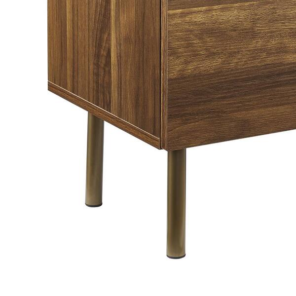 Walnut 48 in. Sideboard Buffet Console Storage Cabinet with 4 Drawers and 1 Door Faux Marble Top