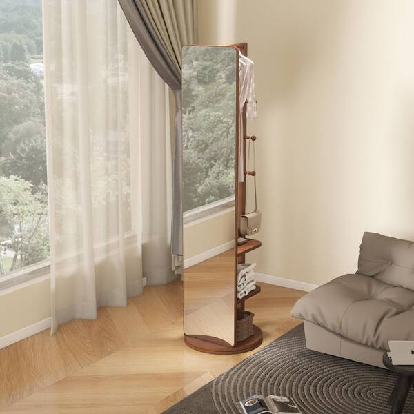 Walnut Brown 17.7 in. W x 65.7 in. H Rectangular Wood Full Length Mirror
