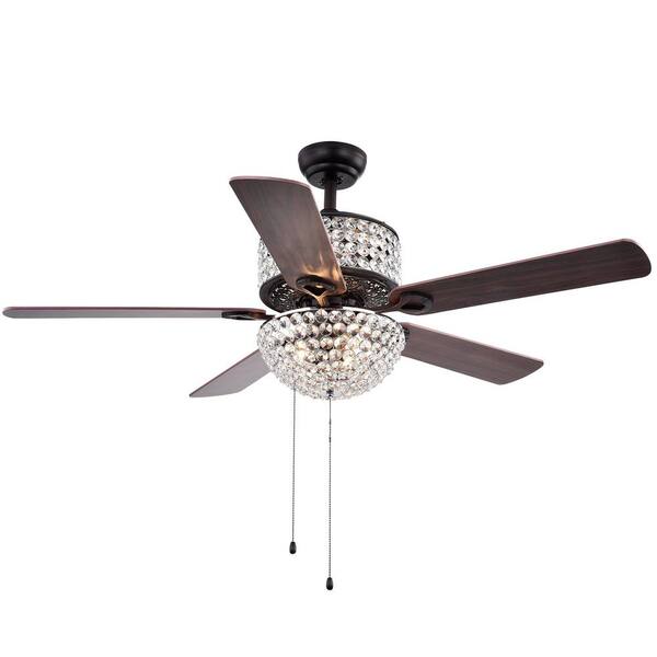 Laure 20 in. 6-Light Indoor Matte Black and Brown Finish Hand Pull Chain Ceiling Fan