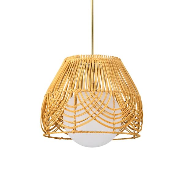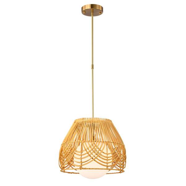 Lotta 13 in. 1-Light Indoor Brass and Woven Rattan Finish Pendant with Light Kit