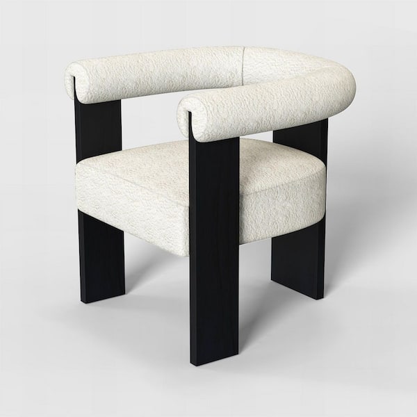 Owena Ivory Modern Armchair with Padding Wood Frame