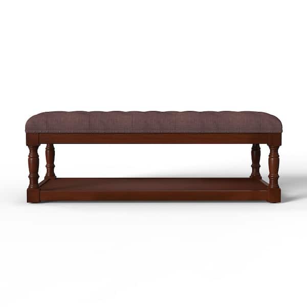 Tubbs 48 in. Chocolate Brown Tufted Linen Cocktail Shelved Ottoman