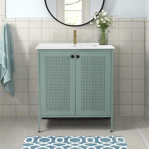 30 in. W x 18.3 in. D x 33.4 in. H Freestanding 1-Sink Bathroom Vanity with White Ceramic Top in Mint Green