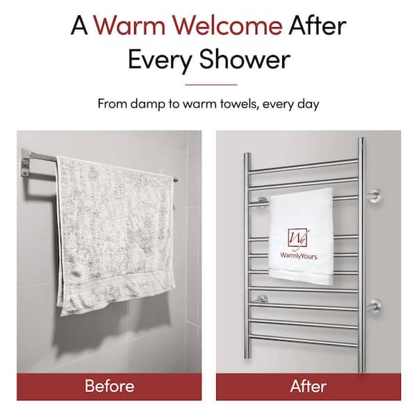 Infinity 10-Bars Hardwired and Plug-In 120 V 32 in. Towel Warmer in Brushed Stainless Steel