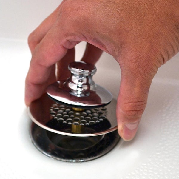 Universal NuFit Push Pull Bathtub Stopper with Grid Strainer and Silicone, Two Pins in Chrome Plated