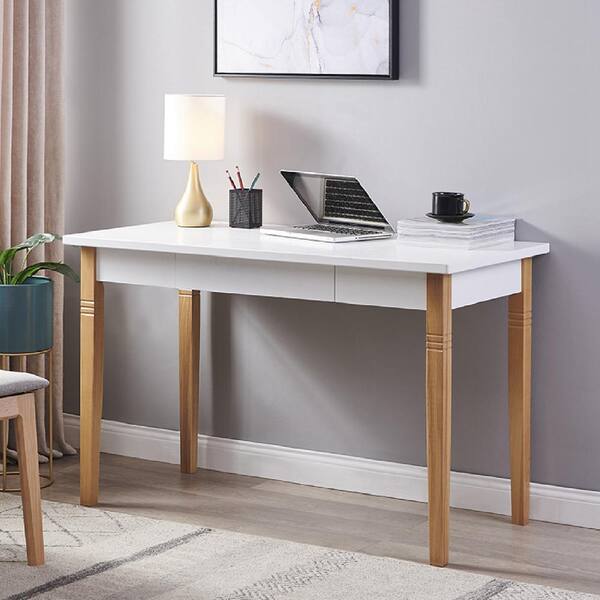 23.62 in. Rectangular White Wood 1-Drawer Computer Desk with Solid Wood Legs