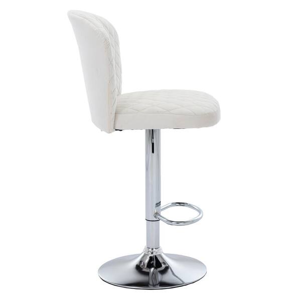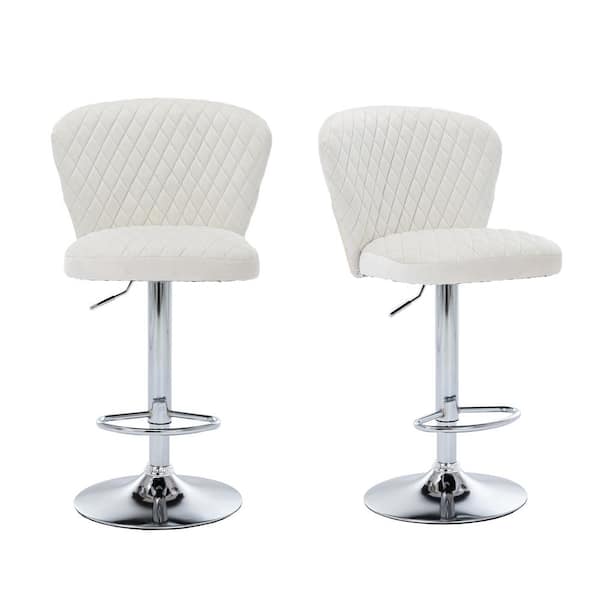 46.46 in. White Low Back Metal Frame Adjustable Height Bar Stool with Fabric Seat (Set of 2)