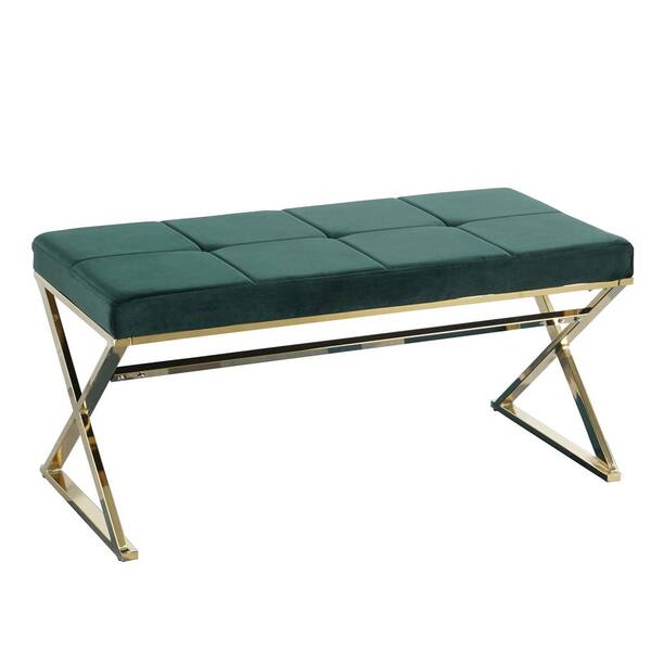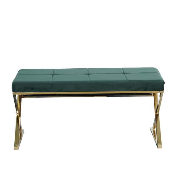 Green Velvet Ottoman Bench 18.70 in. x 18.10 in. x 38.90 in.